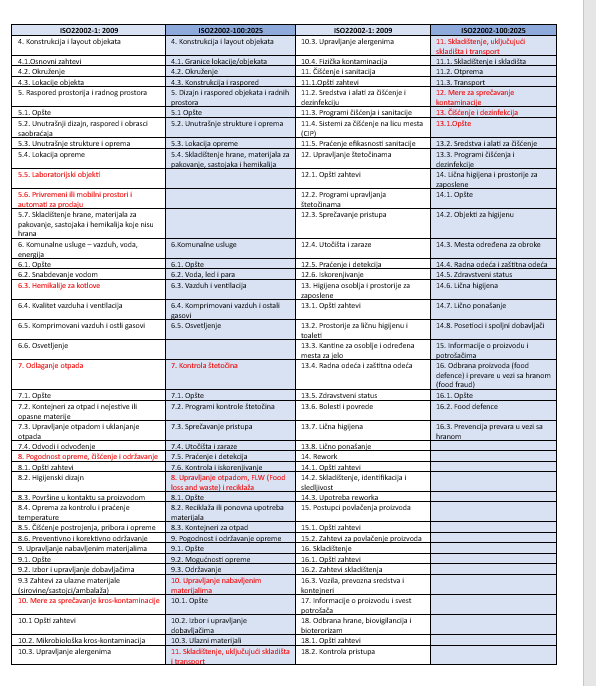 U ovom tekstu ćemo proći kroz novine vezane za opšte zahteve definisane kroz ISO22002-100:2025 praveći upoređivanje sa TS ISO 22002:2009.